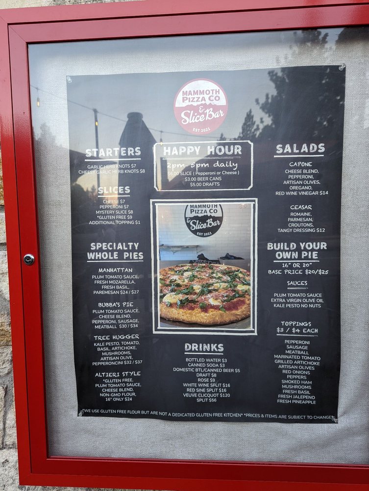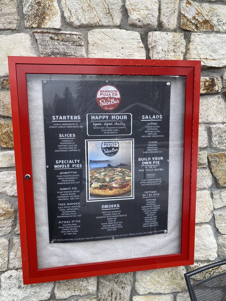Welcome to Mammoth Pizza Co & Slice Bar, an inviting spot nestled in the heart of Mammoth Lakes, where pizza dreams come true. This casual eatery strikes the perfect balance between hearty and delicious, offering a range of options that cater to everyone, including numerous vegetarian choices. Their menu features massive individual slices alongside mouth-watering whole pizzas, making it ideal for both quick bites and shared meals.